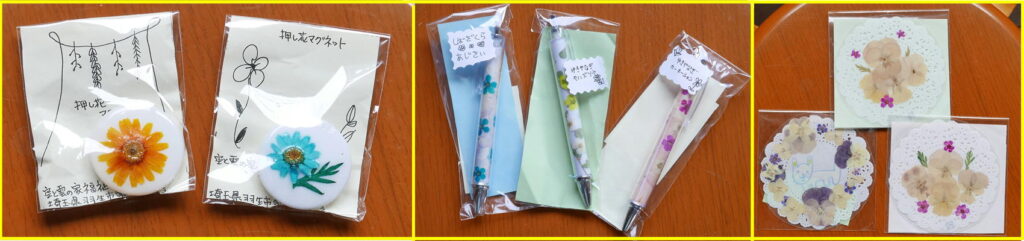 ・その他、押し花額、ボールペン、しおり、マグネットなど